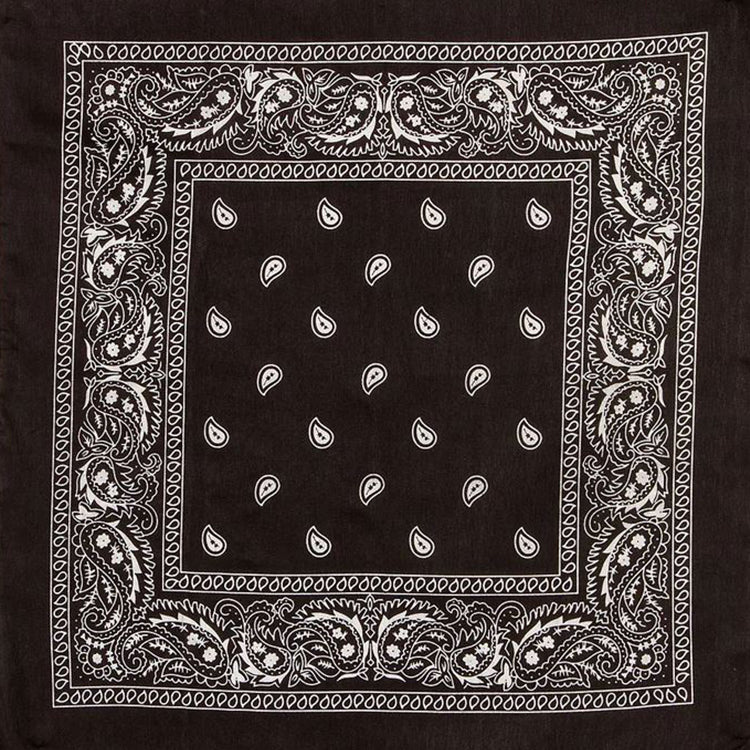 Bandanas can be worn as a head wrap, bracelet, scarf, and more! Choose your style and rock this bold black paisley bandana all festival season.